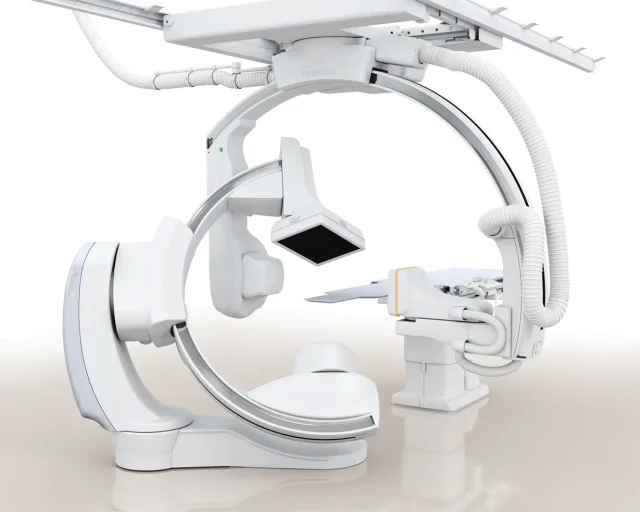 Основная С-дуга с увеличенной глубиной 107 см, излучателем и детектором имеет облегченный поворотный шарнир с возможностью вращения штатива, что значительно упрощает позиционирование и предоставляет специалисту возможность проводить съемку с любой проекцией. Дека стола характеризуется функциями перемещения в разных направлениях и значительной грузоподъемностью.